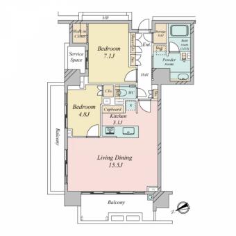 | 間取り | 2LDK | 専有面積 | 72.10m2(21.8坪) 壁芯 |
