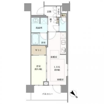 | 間取り | 1LDK+WIC(ウォークインクローゼット) | 専有面積 | 33.18m2(10.0坪) 壁芯 |