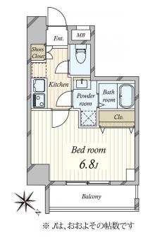 | 間取り | 1K | 専有面積 | 22.87m2(6.9坪) 壁芯 |