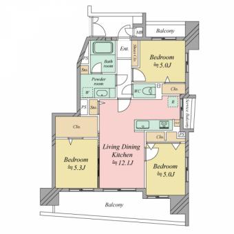 | 間取り | 3LDK | 専有面積 | 65.68m2(19.8坪) 壁芯 |