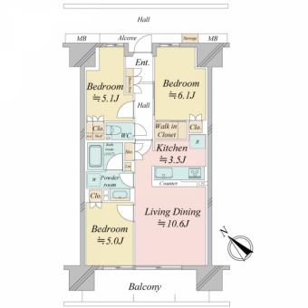 | 間取り | 3LDK | 専有面積 | 66.54m2(20.1坪) 壁芯 |