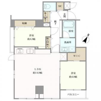| 間取り | 2LDK | 専有面積 | 59.59m2(18.0坪) 壁芯 |