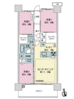 | 間取り | 3LDK | 専有面積 | 70.42m2(21.3坪) 壁芯 |