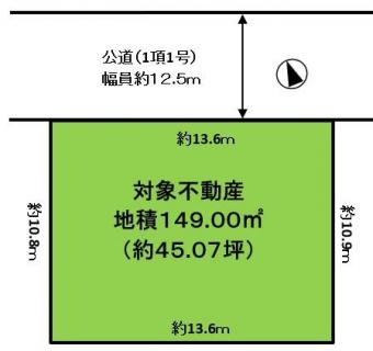 | 備考 | 建築条件無し、お好きなハウスメーカーで建築いただけます。 公道約12.5mに接する45坪の整形地土地です。お好きな間取で建築いただけます。建築条件無 |