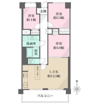 | 間取り | 3LDK | 専有面積 | 61.92m2(18.7坪) 壁芯 |