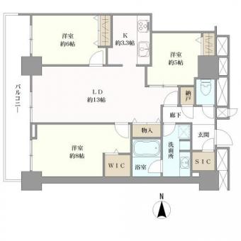 | 間取り | 3LDK | 専有面積 | 80.82m2(24.4坪) 壁芯 |