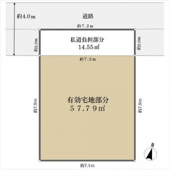 | 接道状況 | 一方 北約4.0m私道、間口:約7.2m(位置指定道路) | ||