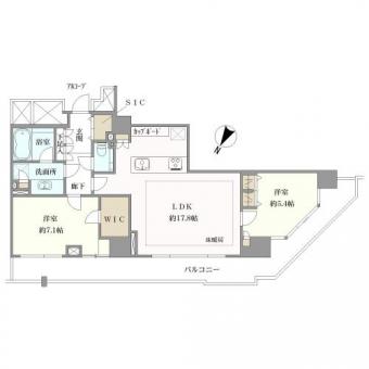 | 間取り | 2LDK | 専有面積 | 71.54m2(21.6坪) 壁芯 |