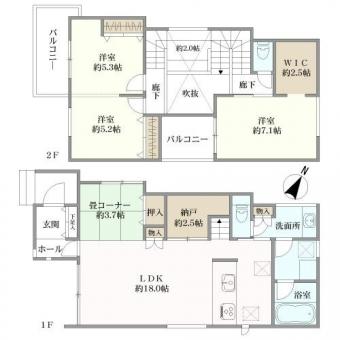 | 土地面積 | 140.53m2(42.5坪) 登記簿 (セットバック要6.14m2) | 建物延面積 | 107.65m2 |