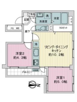 | 間取り | 2LDK | 専有面積 | 47.04m2(14.2坪) 壁芯 |