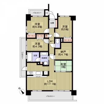 | 間取り | 4SLDK | 専有面積 | 80.96m2(24.4坪) 壁芯 |