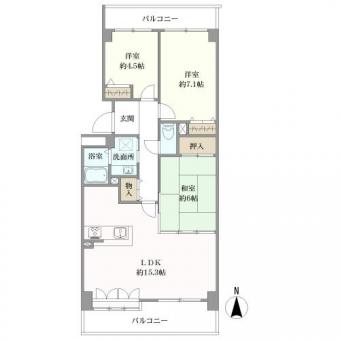 | 間取り | 3LDK | 専有面積 | 74.33m2(22.4坪) 壁芯 |