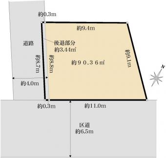 | 土地面積 | 90.36m2(27.3坪) 実測 別途私道負担9.97m2 | ||
