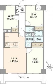 | 間取り | 3LDK | 専有面積 | 60.00m2(18.1坪) 壁芯 |