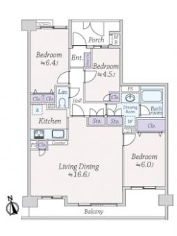 | 間取り | 3LDK | 専有面積 | 81.25m2(24.5坪) 壁芯 |