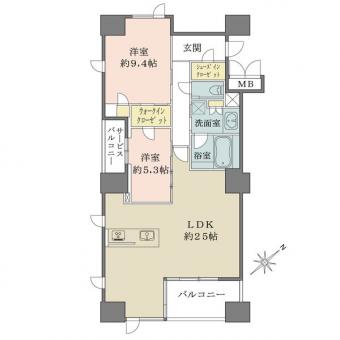 | 間取り | 2LDK | 専有面積 | 90.24m2(27.2坪) 壁芯 |