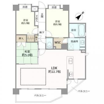 | 間取り | 3LDK+WSC | 専有面積 | 85.30m2(25.8坪) 壁芯 |