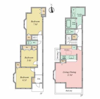 | 土地面積 | 109.70m2(33.1坪) 登記簿 | 建物延面積 | 91.21m2 |