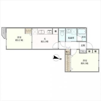 | 間取り | 2K | 専有面積 | 41.49m2(12.5坪) 壁芯 |