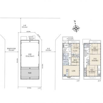 | 土地面積 | 114.80m2(34.7坪) 登記簿 別途私道負担36.00m2 | 建物延面積 | 183.42m2 |