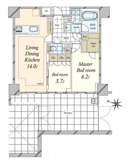 | 間取り | 2LDK | 専有面積 | 56.91m2(17.2坪) 壁芯 |