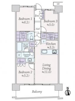 | 間取り | 3LDK | 専有面積 | 70.09m2(21.2坪) 壁芯 |
