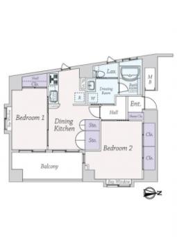 | 間取り | 2DK | 専有面積 | 51.17m2(15.4坪) 壁芯 |