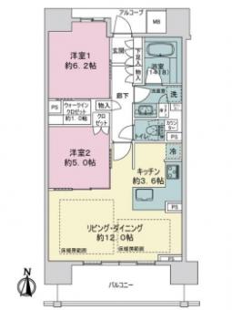 | 間取り | 2LDK | 専有面積 | 62.01m2(18.7坪) 壁芯 |