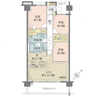 | 間取り | 3LDK | 専有面積 | 76.94m2(23.2坪) 壁芯 |