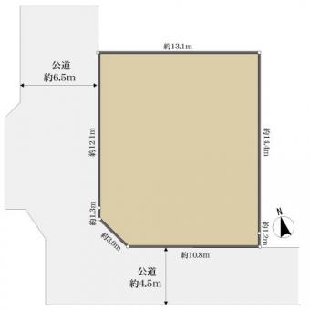 | 接道状況 | 南公道、間口:4.5m 西公道、間口:6.5m | ||