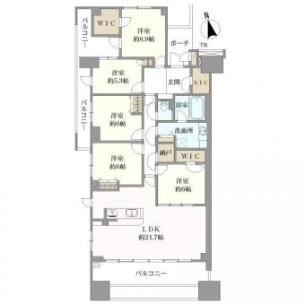 | 間取り | 5LDK+2WIC+SIC+納戸 | 専有面積 | 122.14m2(36.9坪) 壁芯 |