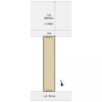 | 接道状況 | 二方 北約29.9m公道、間口:約6.7m 南約4.4m公道、間口:約6.7m | ||