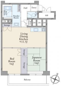 | 間取り | 2LDK | 専有面積 | 59.85m2(18.1坪) 壁芯 |