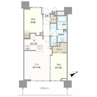 | 間取り | 2LDK+WIC+SIC | 専有面積 | 56.77m2(17.1坪) 壁芯 |