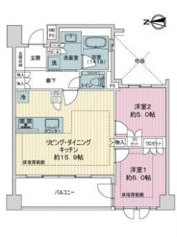 | 間取り | 2LDK | 専有面積 | 62.51m2(18.9坪) 壁芯 |