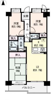 | 間取り | 3LDK | 専有面積 | 62.35m2(18.8坪) 壁芯 |