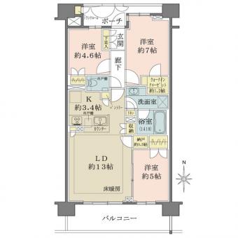 | 間取り | 3LDK | 専有面積 | 74.00m2(22.3坪) 壁芯 |