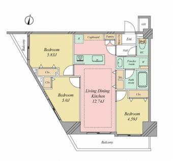 | 間取り | 3LDK | 専有面積 | 61.12m2(18.4坪) 壁芯 |