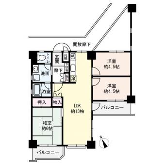 | 間取り | 3LDK | 専有面積 | 63.55m2(19.2坪) 壁芯 |