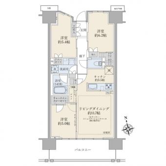 | 間取り | 3LDK | 専有面積 | 72.16m2(21.8坪) 壁芯 |