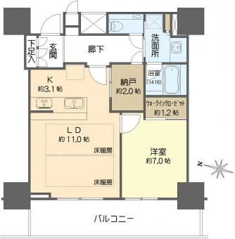 | 間取り | 1LDK | 専有面積 | 57.31m2(17.3坪) |