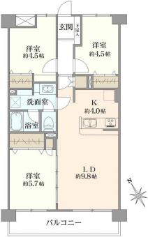 | 間取り | 3LDK | 専有面積 | 70.74m2(21.3坪) 壁芯 |