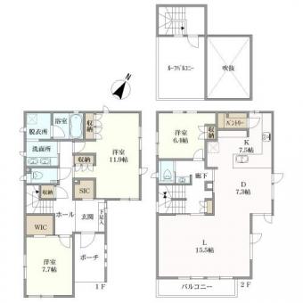| 備考 | ■家具・調度品は販売価格に含まれません。北東側道路には接道しておりません。WIC=ウォークインクローゼット、SIC=シューズインクローゼット |