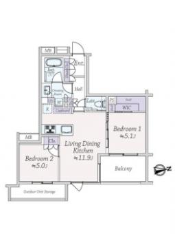 | 間取り | 2LDK | 専有面積 | 54.53m2(16.4坪) 壁芯 |
