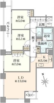 | 間取り | 3LDK | 専有面積 | 75.88m2(22.9坪) 壁芯 |