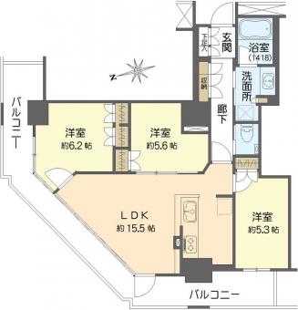 | 間取り | 3LDK | 専有面積 | 71.49m2(21.6坪) |