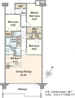 | 間取り | 3SLDK | 専有面積 | 107.58m2(32.5坪) 壁芯 |