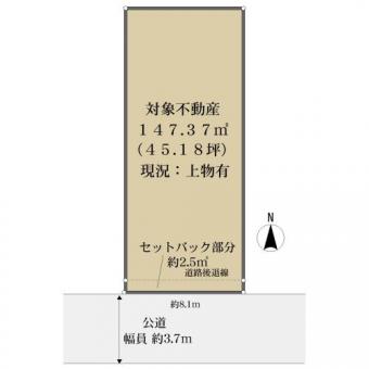 | 接道状況 | 一方 南約3.7m公道、間口:約8.1m | ||
