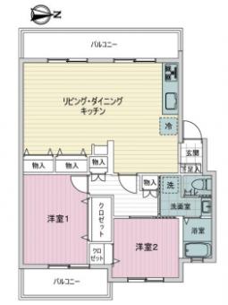 | 間取り | 2LDK | 専有面積 | 63.00m2(19.0坪) 壁芯 |