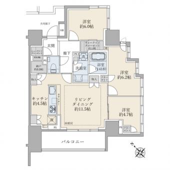 | 間取り | 3LDK | 専有面積 | 77.78m2(23.5坪) 壁芯 |